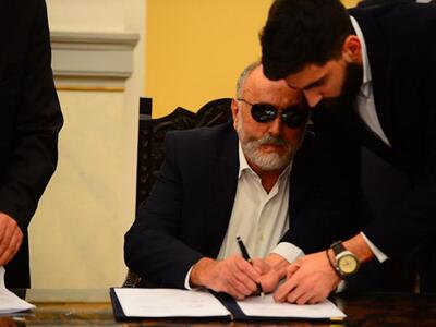 Αμέσως μετά ορκίζεται ενώπιον του Προέδρου της Δημοκρατίας Κάρολου Παπούλια. Ο όρκος του είναι πολιτικός. Σύμφωνα με αυτόν “διαβεβαιώνει στην τιμή και στην συνείδηση του ότι θα τηρεί το Σύνταγμα και τους Νόμους”.