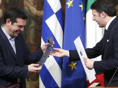 Στις 3 Φεβρουαρίου ο Έλληνας Πρωθυπουργός επισκέπτεται την Ιταλία και ο Μ. Ρέντσι του κάνει δώρο μια γραβάτα. «Όταν η Ελλάδα βγει από την κρίση θα φορέσεις ιταλική γραβάτα» ήταν τα λόγια με τα οποία έκλεισε τις κοινές δηλώσεις του με τον Αλέξη Τσίπρα ο Ιταλός πρωθυπουργός.