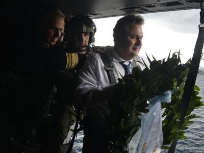 Στις 30 Ιανουαρίου πραγματοποιείται άλλη μια συμβολική κίνηση από την κυβέρνηση και συγκεκριμένα από την πλευρά του Πάνου Καμμένου. Ο νέος υπουργός Άμυνας επισκέπτεται τα Ίμια και πραγματοποιεί ρίψη στεφάνου, ανήμερα της συμπλήρωσης 18 χρόνων από την τραγωδία που συνέβη εκεί.