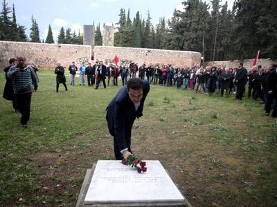 Στην συνέχεια την ίδια μέρα ο Αλέξης Τσίπρας κάνει μια καθαρά συμβολική κίνηση και επισκέπτεσαι το Σκοπευτήριο της Καισαριανής και καταθέτει λουλούδια σαν φόρο τιμής στους πεσόντες κατά την γερμανική κατοχή.