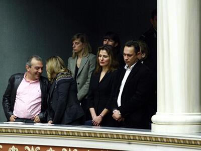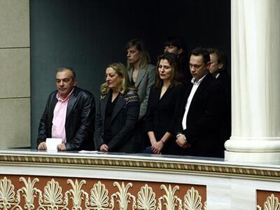 Τα αδέλφια του Αλέξη Τσίπρα δίπλα στη σύντροφό του τον χαιρετούν απο τα θεωρεία της Βουλής