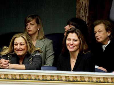 Η Περιστέρα Μπαζιάνα, πιο λαμπερή από ποτέ και φυσικά πιο χαρούμενη από ποτέ, ντυμένη κομψά αλλά διακριτικά, μπήκε χωρίς φρουρά στη Βουλή και παρακολούθησε την οκρωμοσία από τα θεωρεία. Ακριβώς δίπλα της, το ίδιο χαρούμενη, η αρχιτεκτόνισσα αδελφή του Αλέξη Τσίπρα, Ζανέτ, και ο αδελφός του, Δημήτρης.