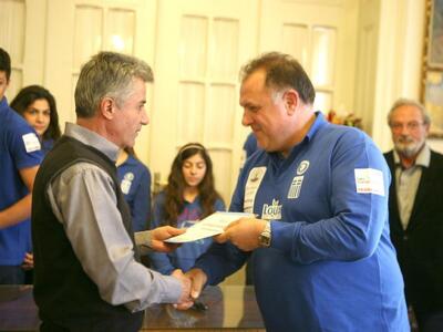 Ο κ. Πελετίδης καλωσόρισε στο Δημαρχείο τους αθλητές και τους προπονητές, χαρακτηρίζοντάς τους «πρέσβεις της πόλης μας, της ειρήνης και της φιλίας των λαών».