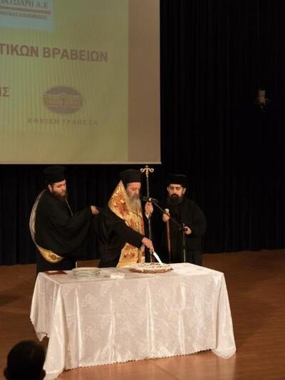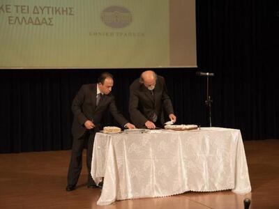 Στη συνέχεια ο Θεοφιλέστατος ευλόγησε και χάραξε τη Βασιλόπιτα του ΤΕΙ Δυτικής Ελλάδας. Ακολούθησε η κοπή της Βασιλόπιτας από τον Πρόεδρο του ΤΕΙ Καθ. Σωκράτη Καπλάνη και η απονομή επαίνων στους τέσσερις κορυφαίους πτυχιούχους των Σχολών του περασμένου Ακαδημαϊκού έτους, στους επιτυχόντες εισακτέους σε ΑΕΙ της χώρας και στους αριστεύσαντες μαθητές, τέκνα μελών της Κοινότητας του ΤΕΙ Δυτικής Ελλάδας.