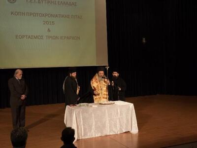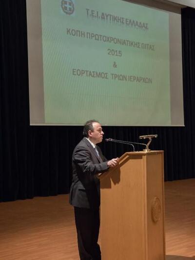 Την Πέμπτη 29/01/2015 και ώρα 12 το μεσημέρι, πραγματοποιήθηκε η εκδήλωση της κοπής της Πρωτοχρονιάτικης Βασιλόπιτας και του εορτασμού των Τριών Ιεραρχών του ΤΕΙ Δυτικής Ελλάδας, στο Μεγάλο Αμφιθέατρο του Συνεδριακού Κέντρου του, στην Πάτρα, στο Κουκούλι.
