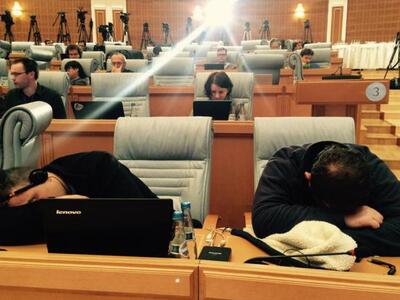Μάλιστα έκαναν και... κόντρες με τους συναδέλφους τους που ζούσαν την ίδια στιγμή αντίστοιχη ταλαιπωρία στο Μινσκ. Εκείνοι περίμεναν τη συνέντευξη Τύπου έπειτα από τη συνάντηση των Φρανσουά Ολάντ, Ανγκελα Μέρκελ, Βλαντιμίρ Πούτιν και Πέτρο Ποροσένκο, για του ουκρανικό. Εκεί μάλιστα κάποιοι δεν κρατήθηκαν και παραδόθηκαν στην αγκαλιά του Μορφέα!