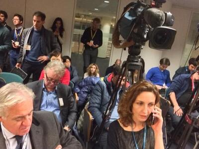 Αν και έσπευσαν να συγκεντρωθούν στην αίθουσα που θα παραχωρούνταν η συνέντευξη Τύπου, το μόνο που κατάφεραν ήταν να... υπνωτίζονται κοιτάζοντας το τραπέζι στο οποίο υπήρχαν τα καρτελάκια για τον Κλάους Ρέγκλινγκ, τον Γερούν Ντάισελμπλουμ και τον Πιερ Μοσκοβισί.