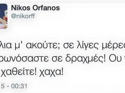 Χαμός στα social media εδώ και λίγες ώρες με αφορμή ένα tweet που έκανε αργά χθες το βράδυ, ο βουλευτής του Ποταμιού Νίκος Ορφανός.