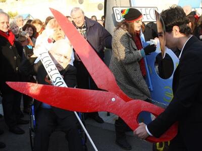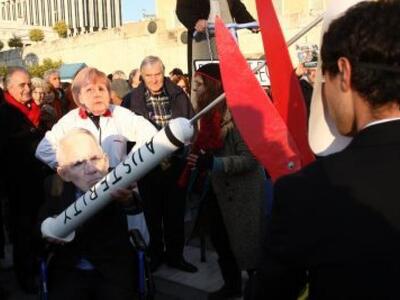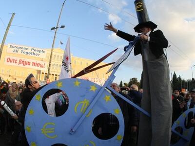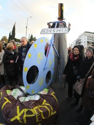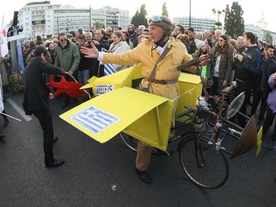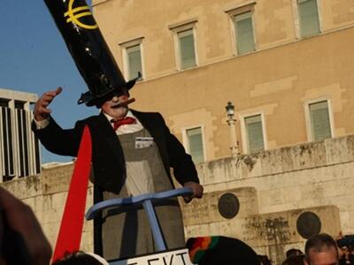 Ντυμένος Τσίπρας κόβει τη δόση του Σόιμπλε, υπό το βλέμμα της ...νοσοκόμας Μέρκελ. Σήμερα το απόγευμα στο Σύνταγμα όλα αυτά. Εκεί και ο τραπεζίτης.