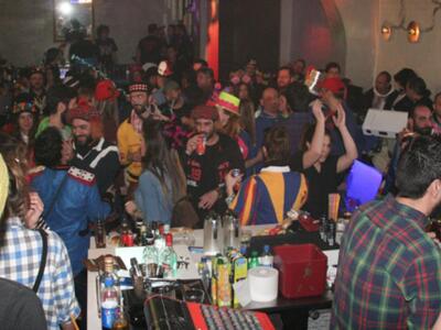 Κεφάτη ατμόσφαιρα εκεί που οι καρναβαλιστές κυνηγοί ξαποσταίνουν για λίγο, παίρνουν δυνάμεις για να συνεχίσουν για τη μεγάλη κορύφωση, για τη μεγάλη δοκιμή του τέλους, εκεί που ως καρναβαλοδρομείς μεγάλων αποστάσεων θα δώσουν τον καλύτερο εαυτό τους στις παρελάσεις του Σαββατοκύριακου.