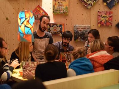 Ο ιδιοκτήτης του, ο Κώστας Βασιλακόπουλος μιλάει για 300 παιχνίδια που έρχονται από το εξωτερικό και τα οποία συμπληρώνονται συνεχώς με καινούργια. Κανένα από αυτά δεν είναι τα γνωστά, δηλαδή τράπουλα, τάβλι, σκάκι κλπ. όλα είναι παιχνίδια που δεν τα έχει ακούσε κανείς ξανά.
