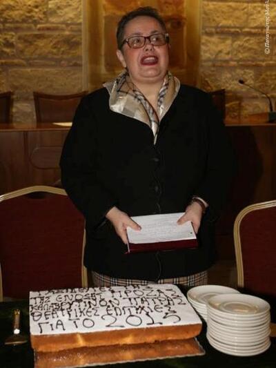 Στην κοπή της Πρωτοχρονιάτικης πίτας παρευρέθηκαν ο Πρόεδρος της Ένωσης Καλαβρυτινών κ.Νίκος Μαντάς και σύζυγος της αξέχαστης Ντέπυς Μαντά, ο πρώην Πρόεδρος της 'Ενωσης Αλ.Μπίρμπας καθώς και η επίτιμος Πρόεδρος της 'Ενωσης Γιώτα Κωνσταντοπούλου. Στην εκδήλωση, η πεντάδα των Ταξιδευτών, που διαγωνίστηκε στο Φεστιβάλ Σάτιρας "Μώμος ο Πατρεύς" με το έργο "Η πώληση της Αθηνάς", έπαιξε προς τιμήν του Προέδρου κ. Νίκου Μαντά καθώς και για όλους τους παρευρισκόμενους φίλους τους.