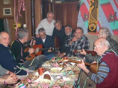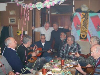Μια τέτοια βραδιά, με τη συνοδεία μπουζουκιού, μεζέδων και καλού κρασιού, πέρασαν χθες το βράδυ αρκετοί πατρινοί στο σπίτι του Κωνσταντίνου Τσίχλα.
