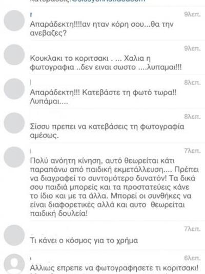 Η φωτογραφία του μικρού κοριτσιού, όπως ήταν αναμενόμενο, προκάλεσε έκρηξη αρνητικών σχολίων στο διαδίκτυο. Με έντονο ύφος, οι επισκέπτες του προφίλ της Ελληνίδας παρουσιάστριας ζήτησαν η φωτογραφία να διαγραφεί άμεσα.