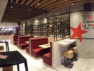Τα Goodys Burger House επενδύουν στη νέα τάση τόσο όσον αφορά τις γευστικές προτάσεις, αλλά και το διακοσμητικό στυλ που κινείται νεανικό industrial στυλ.