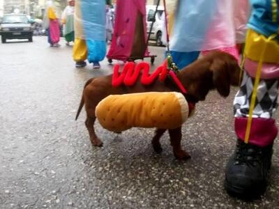 Ο ιδιοκτήτης του σκύλου που βλέπετε στη φωτογραφία σε μια στιγμή δημιουργικής καρναβαλικής «τρέλας» αποφάσισε να ντύσει το τετράποδο φίλο του… hot dog, παίζοντας δημιουργικά με τις λέξεις και τις καρναβαλικές καταστάσεις, και φυσικά να μοιραστεί μαζί του τη μοναδική εμπειρία της παρέλασης.