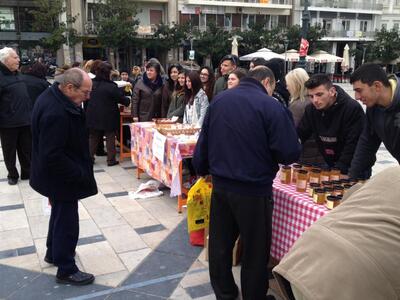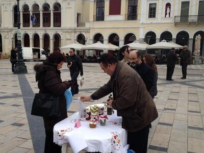 Bazaar τοπικών προϊόντων πραγματοποιήθηκε σήμερα στην Πλατεία Γεωργίου στην Πάτρα. Μαθητές απο σχολεία της ευρύτερης περιοχής της πόλης συγκεντρώθηκαν από νωρίς το πρωί και έστησαν τους πάγκους τους στο κέντρο. Το Bazaar θα είναι ανοιχτό για το κοινό από τις 9:00 - 13:30.