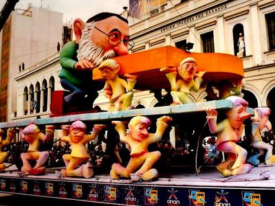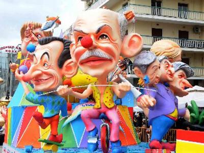 Το εξαιρετικό φετινό καρναβαλικό πλήρωμα 95 με θέμα "Η Αγία Πατρούπολη" που περιελάμβανε και τις Μασκαράτες που έφτιαξε ο Ένο Σκοντράνι και παρίσταναν τους Πελετίδη, Παπαρήγα και Στάλιν.