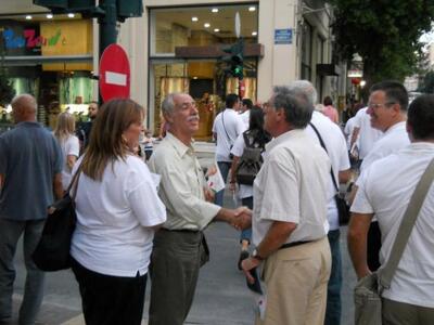 Όπως πάντα, οι φίλοι και τα μέλη φορούσαν μπλουζάκια με το όνομα του συνδυασμού "Τώρα για την Πάτρα" ενώ μοίραζαν στους πολίτες το φυλλάδιο της παράταξης.
