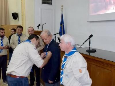 Ιδιαίτερη συγκίνηση επικράτησε, όταν στους κεντρικούς ομιλητές της βραδιάς – τον Νίκο Μπρουσινό από την Ένωση Παλαιών Προσκόπων του 2ου Συστήματος Πάτρας και τον Χαράλαμπο Μαρινόπουλο από την ΕΠΠ του 3ου Συστήματος Πάτρας – απονεμήθηκε το μετάλλιο «Αθανάσιος Λευκαδίτης», που αποτελεί την ανώτατη ηθική αμοιβή παλαιών προσκόπων, για τη σημαντική και ανιδιοτελή προσφορά τους.