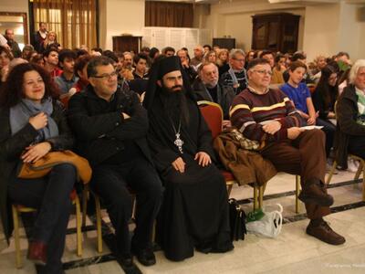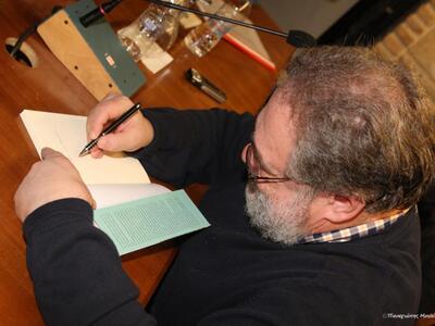 Ομιλητές στην εκδήλωση ήταν ο Γιώργος Μπεκιάρης, δάσκαλος-θεατρολόγος, ο Παναγιώτης Κουνάβης, Μαθηματικός MSc , Καθηγητής στο Πρότυπο Πειραματικό ΓΕΛ Πάτρας και ο συγγραφέας.