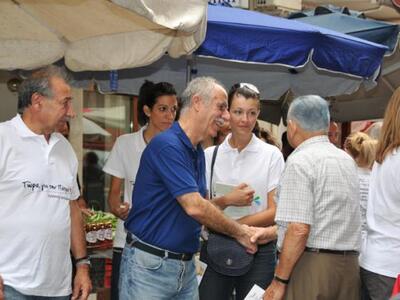 Νέα εξόρμηση πραγματοποίησε σήμερ η δημοτική κίνηση του Γιάννη Δημαρά, αυτή τη φορά στο κέντρο της Πάτρας, με τη συμμετοχή δεκάδων μελών της κίνησης. Βρέθηκαν στο κέντρο της πόλης και περιηγήθηκαν σε καταστήματα του κέντρου αλλά και στην λαϊκή αγορά όπου συνομίλησαν με παραγωγούς και πολίτες ενώ η περιοδεία κατέληξε στα καφέ της Αγ. Νικολάου.