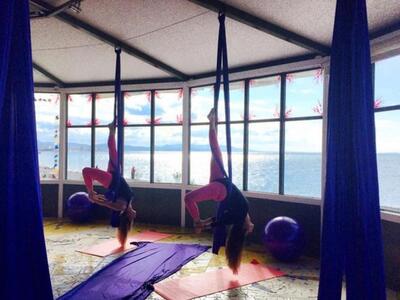 Στο "γυμναστήριο" με την υπέροχη θέα (καθώς έχει θέα 360 μοιρών) διδάσκει μια τεχνική εναέριου χορού (aerial fitness dance), τηρώντας ταυτόχρονα και τις τις βασικές αρχές του κλασσικού μπαλέτου.