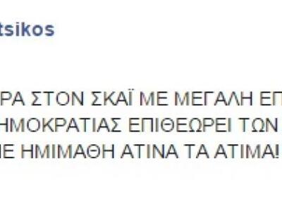 «Ο κ. Μπογδάνος τώρα στον ΣΚΑΪ με μεγάλη έπαρση περιγράφει: "Ο Πρόεδρος της Δημοκρατίας επιθεωρεί των αγημάτων οίτινα"... Αχ βρε Κωνσταντίνε ημιμαθή, άτινα τα άτιμα!», έγραψε ο Ανδρέας Μικρούτσικος στο facebook.