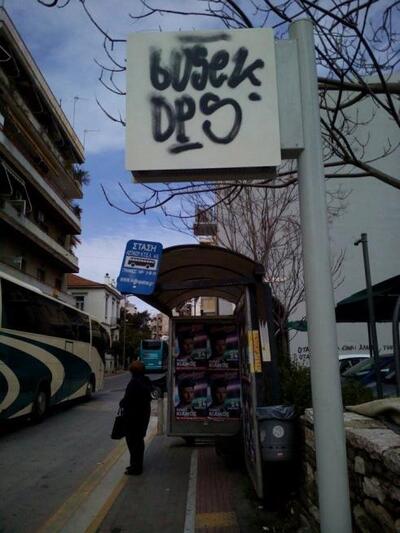 Άγνωστοι λίγες ώρες μετά την λειτουργία της στάσης στη διασταύρωση της Αγίου Ανδρέου με τη Ζαϊμη έσπευσαν να την καταστρέψουν μουτζουρώνοντάς τη με σπρέι.