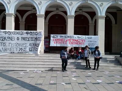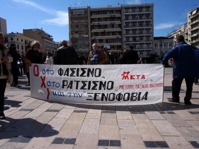 Με τη συμμετοχή κοινωνικών φορέων, μεταναστών και πολιτών πραγματοποιήθηκε σήμερα στην πλατεία Γεωργίου της Πάτρας αντιφασιστικό συλλαλητήριο με κεντρικό σύνθημα «όχι στο ρατσισμό».