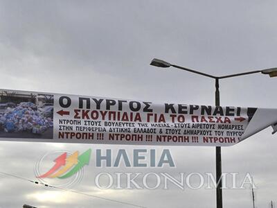 ¨Ο Πύργος κερνάει σκουπίδια για το Πάσχα. Νροπή στους βουλευτές της Ηλείας, στους αιρετούς Νομάρχες, στην Περιφέρεια Δυτικής Ελλάδος και στους Δημάρχους του Πύργου. ΝΤΡΟΠΗ! ΝΤΡΟΠΗ! ΝΤΡΟΠΗ»