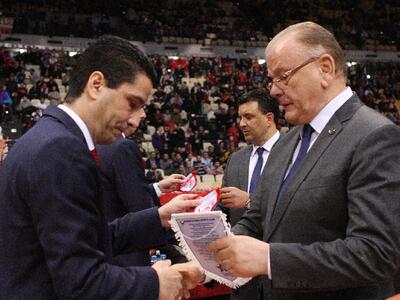Η ΚΑΕ Ολυμπιακός τίμησε τόσο τον προπονητή με τον οποίο κατέκτησε την Ευρωλίγκα στην Πόλη, όσο και τον φόργουορντ της Εφές Ανατολού που φόρεσε τη φανέλα των ερυθρόλευκων και κατέκτησε την δεύτερη ευρωπαϊκή κούπα της ομάδας.