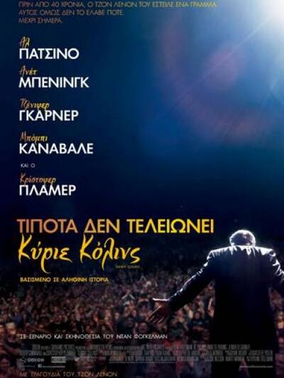 «Τίποτα Δεν Τελειώνει Κύριε Κόλινς - Danny Collins», έτσι λέγεται η νέα κινηματογραφική ταινία με πρωταγωνιστή τον 75χρονο σήμερα μύθο του Χόλυγουντ, τιμημένο με βραβείο Όσκαρ καλύτερης α’ ανδρικής ερμηνείας για το συγκινητικό «Άρωμα Γυναίκας» το 1993, Αλ Πατσίνο.