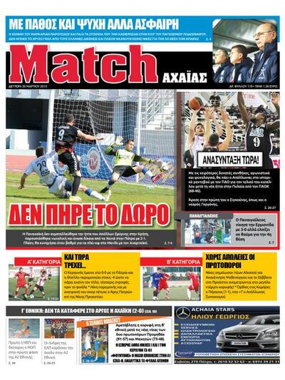 Πηγή: Εφημερίδα Match Αχαϊας - Δείτε το σημερινό πρωτοσέλιδο