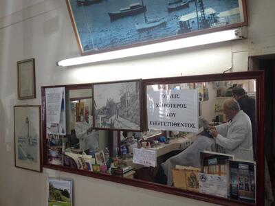 Κάποτε αυτά τα κουρεία ήταν ο κανόνας στο κούρεμα και σημείο αναφοράς ακόμη και για συναντήσεις των πελατών και για σχόλια και πολιτικές κουβέντες. Μικρές χρονομηχανές σαν αυτή της οδού Ερμού, ακριβώς απέναντι απο την ασφάλεια Πατρών.