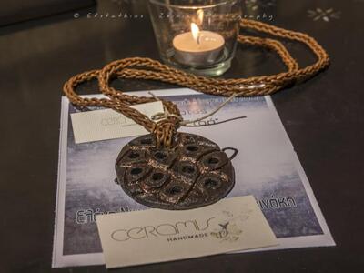 «Η άξια κεραμίστρια Ελένη Μαρινάκη, επιλέγει στην παρούσα περίσταση να εκθέσει αποκλειστικά κεραμικό κόσμημα.