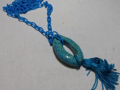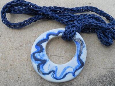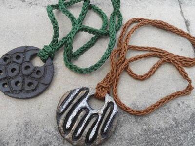 Οι τρεις παραπάνω φωτό δείχνουν κοσμήματα με κεραμικά στοιχεία και υλικά της Ελένης Μαρινάκη και σχεδιασμό της Λένας Μπουρδοπούλου.