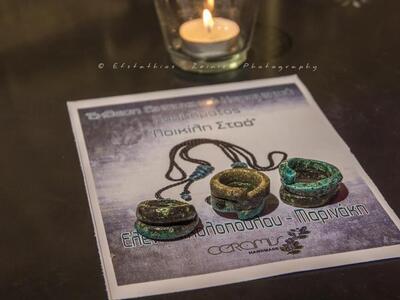 Το περασμένο Σάββατο 28 Μαρτίου 2015 ξεκίνησε η έκθεση εικαστικού κεραμικού κοσμήματος της Πατρινής δημιουργού Ελένης Νικολοπούλου – Μαρινάκη στον χώρο του art café της Ποικίλης Στοάς στην οδό Ρήγα Φεραίου και Παντανάσσης.