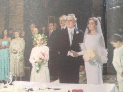 Είναι Ιούλιος του 2004 και το ζευγάρι στο εσωτερικό της μόλις έχει ενώσει τις τύχες του στον ορθόδοξο καθεδρικό ναό του Αγίου Στεφάνου, μπροστά σε αυστηρώς επιλεγμένους (18 τον αριθμό) φίλους, με κουμπάρο τον Γάλλο πολιτικό μηχανικό, Μισέλ Καντάς.