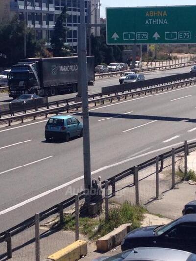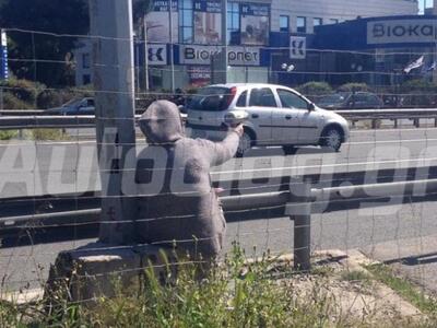 Τις φωτογραφίες δημοσιεύει το autoblog.gr το οποίο σημειώνει ότι η γιαγιά, η οποία φορώντας μια κουκούλα κρύβεται πίσω από μια κολόνα, βρίσκεται κάτω από την γέφυρα της Ανω Κηφισιάς, δύο χιλιόμετρα μετά την έξοδο προς Βαρυμπόμπη, στην εθνική οδό Αθηνών-Λαμίας.