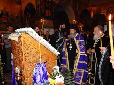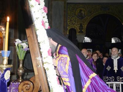 Ὁ Σεβασμιώτατος στὴ σύντομη προσλαλιὰ του παρότρυνε τοὺς πιστοὺς νὰ ἐντείνουν τὸν πνευματικό τους ἀγῶνα, μέσα ἀπὸ τὴν μυστηριακὴ ζωὴ τῆς Ἐκκλησίας, ὥστε νὰ φθάσουν νὰ προσκυνήσουν τὰ σεπτὰ πάθη καὶ νὰ δοξάσουν τὸν Κύριο ἡμῶν Ἰησοῦ Χριστὸ ἀναστάντα ἐκ νεκρῶν.