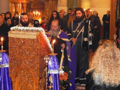 Ὁ Θεοφιλέστατος Ἐπίσκοπος Κερνίτσης κ. Χρύσανθος ἐχοροστάτησε στὴν ἀκολουθία τοῦ Νυμφίου στὸν κατάμεστο ἀπὸ πιστοὺς Ἱερὸ Ναὸ τῆς Ἁγίας Σοφίας Πατρῶν καὶ τούς ἐκάλεσε νὰ συμπορευθοῦν καὶ νὰ συσταυρωθοῦν μὲ τὸν Κύριο ἡμῶν Ἰησοῦ Χριστὸ, τὴν ἁγία αὐτὴ περίοδο τῆς Μεγάλης Ἑβδομάδος.»