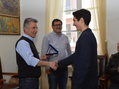 Σήμερα το μεσημέρι στο Δημαρχείο, ο Δήμαρχος Πατρέων Κώστας Πελετίδης βράβευσε τους νεαρούς σκακιστές του Σκακιστικού Ομίλου Πάτρας, Απόστολο Σταματόπουλο και Κυριακή Καλύβα, που διακρίθηκαν στον Παγκόσμιο Διαγωνισμό Επίλυσης Σκακιστικών Προβλημάτων τον περασμένο Γενάρη, καταλαμβάνοντας τη 2η και 3η θέση αντίστοιχα