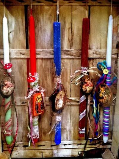 Εκτός από τις γνωστές Πασχαλιάτικες λαμπάδες του εμπορίου, υπάρχουν κι αυτές που έχουν φιλοτεχνηθεί με πιο καλλιτεχνική ματιά όπως του Ένο Σκοντράνι – Eno Shkodrani, μέσα από την συνεργασία του Eno's Fine Art-elier και της Handmade by Aristi Βelavgeni.