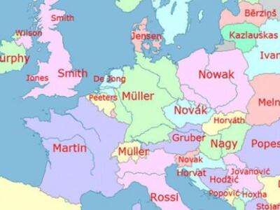 Δείτε στον παρακάτω χάρτη τα δημοφιλέστερα επίθετα σε κάθε χώρα της Ευρώπης.