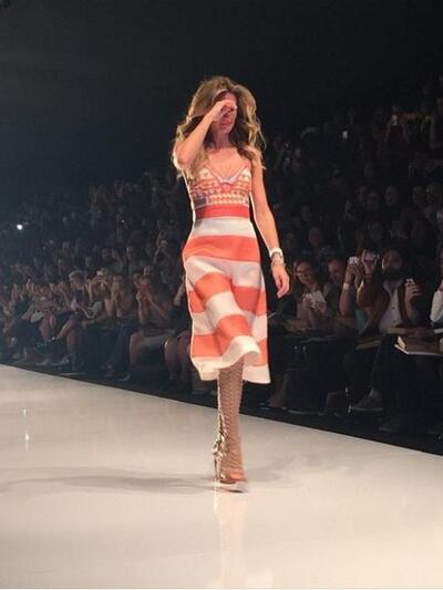 Μόλις ολοκληρώθηκε η επίδειξη για την καλοκαιρινή συλλογή του οίκου μόδας, η Ζιζέλ πλησίασε τα μοντέλα που την περίμεναν, και τα οποία φορούσαν μπλουζάκια με εικόνες της Βραζιλιάνας καλλονής.