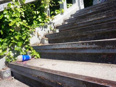 Οι μεγαλύτερες φθορές εντοπίζονται στα σκαλοπάτια, πολλά από τα οποία είναι κανονικές σκοτώστρες, ενώ ο φωτισμός σε πολλά σημεία είναι κατεστραμμένος, οι λάμπες καμένες, τα τοιχώματα λές και τα έχει σκάψει ένα τεράστιο κουτάλι και σε μερικά σημεία κάποια άνοστα συνθήματα "φιλοτεχνημένα" από χρόνια με μαύρη και πορτοκαλί μπογιά, συναγωνίζονται σε κακογουστιά τα πλαστικά μπουκάλια, τα χάρτινα ποτήρια του καφέ, τις γόπες και όλων των ειδών τα σκουπίδια που αφήνουν στο διάβα τους οι περαστικοί, όσοι ακόμη εξακολουθούν να χρησιμοποιούν τις σκάλες για τις...επικίνδυνες διαδρομές τους στην πόλη.