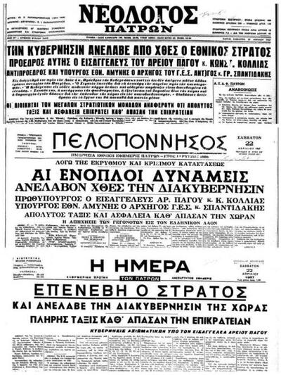 Δείτε φωτογραφίες από τα λογοκριμένα πρωτοσέλιδα των εφημερίδων της Πάτρας, για την επιβολή της δικτατορίας, αλλά και παλιές φωτογραφίες από τον εορτασμό της «επανάστασης» στην πόλη.