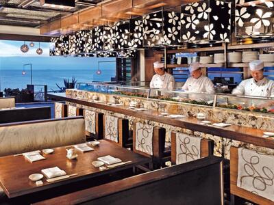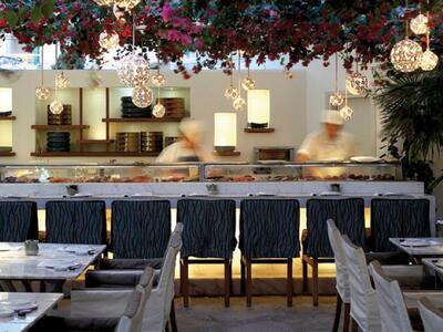 Ο Nobu Matsuhisa και οι σεφ του συνεχίζουν την επιτυχημένη πορεία τους στο πιο κοσμοπολίτικο νησί της Ελλάδας. Υψηλή μαγειρική τέχνη με εμβληματικές σπεσιαλιτέ της σύγχρονης Jap fusion την οποία καθιέρωσε ο Nobu παντρεύοντας το Περού με την Ιαπωνία. Ευρηματικό ceviche με λαβράκι, κινόα, blueberry και ντομάτα, άψογα ψημένο Chilean sea bass με shiitake και τρούφα.