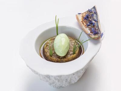 Κορυφαίο πιάτο: Χτένια με topinambur, μανιτάρια morilles και dashi